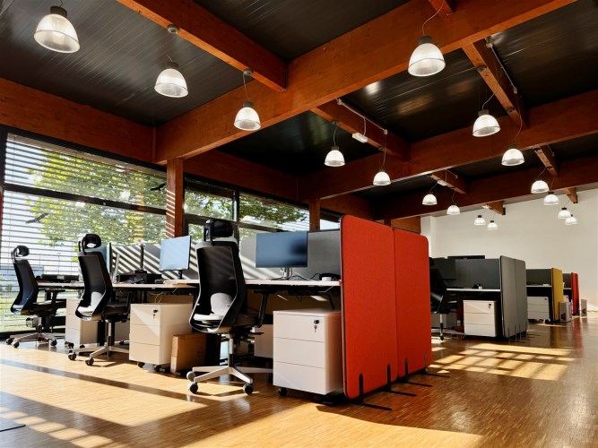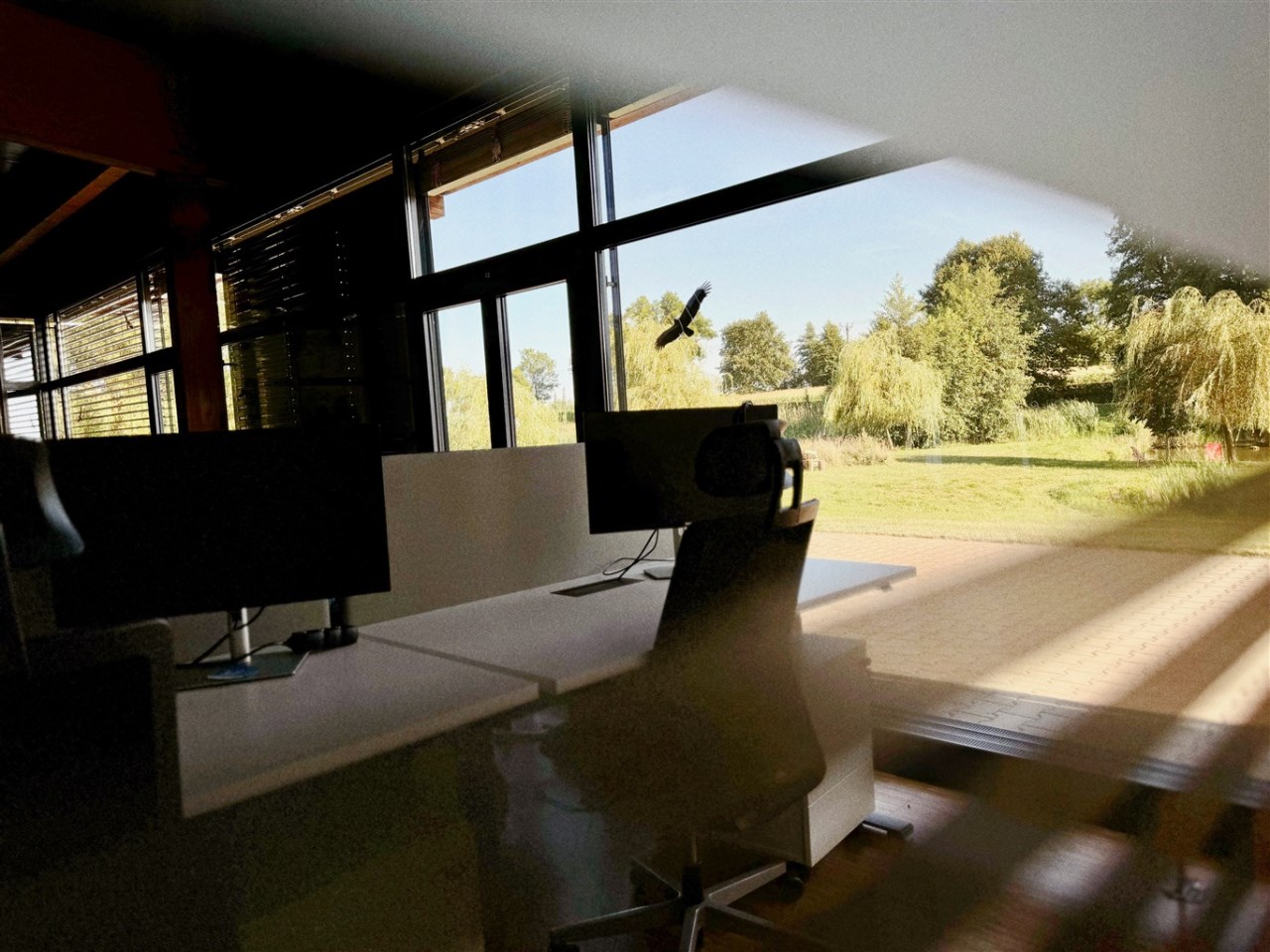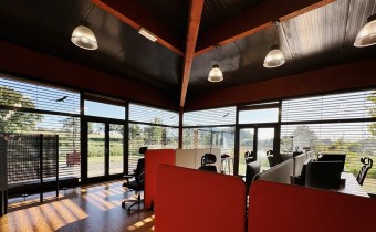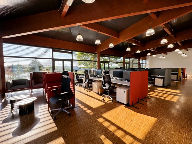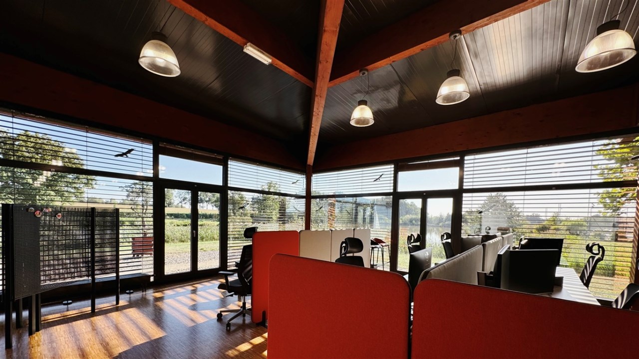 Do wynajęcia najbardziej ekskluzywna część kompleksu – przestronne, pełne światła biura z panoramicznymi oknami z zewnętrznymi żaluzjami i widokiem na stawy, tworzące wyjątkowo reprezentacyjna przestrzeń o wielu możliwościach aranżacyjnych.