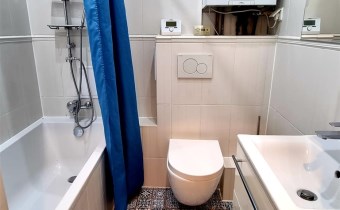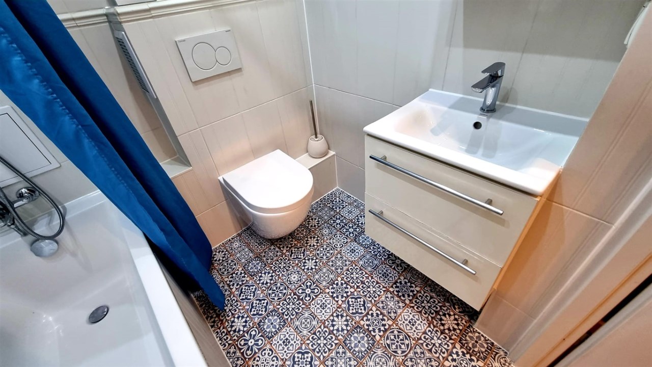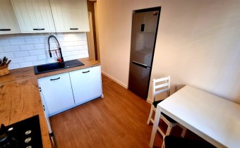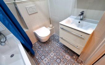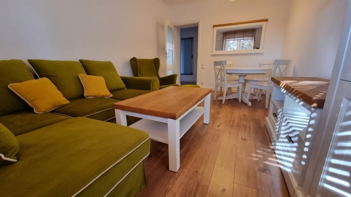 Mieszkanie składa się z dużego pokoju z wygodną, rozkładaną kanapą i stolikiem kawowym, stołem jadalnianym, komodą i fotelem z pufą, sypialni z dużym łóżkiem, stolikami nocnymi i zabudowaną szafą, w pełni wyposażonej kuchni, łazienki z wanną i przedpokoju z zabudowaną i wolnostojącą szafą.